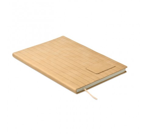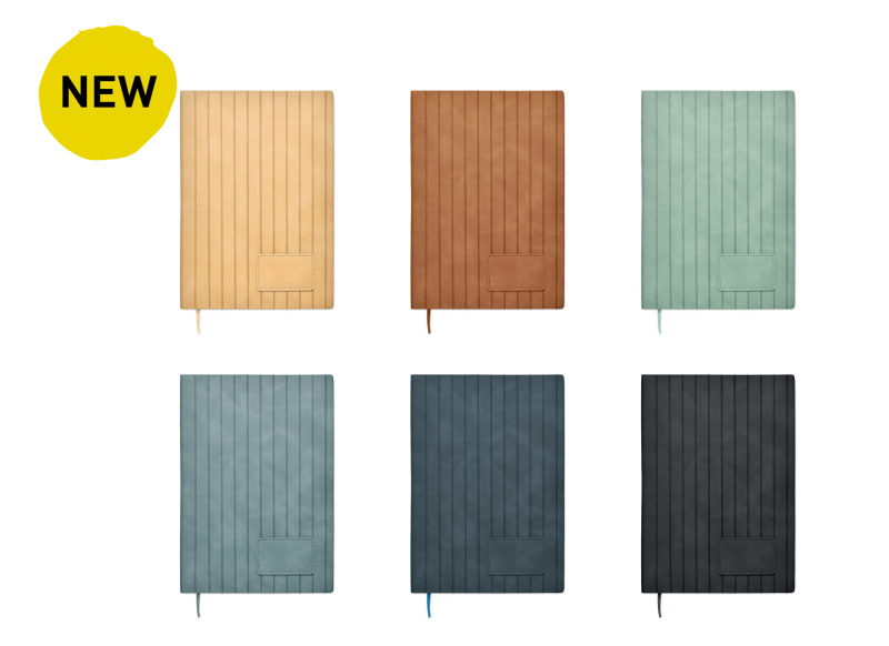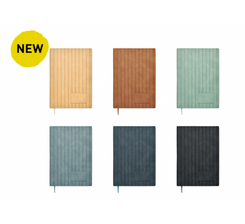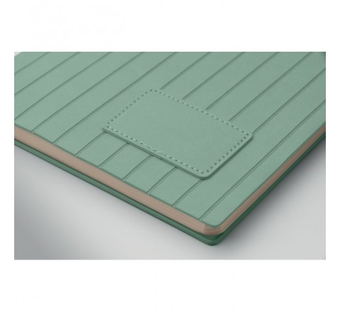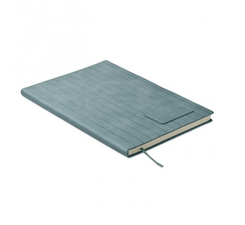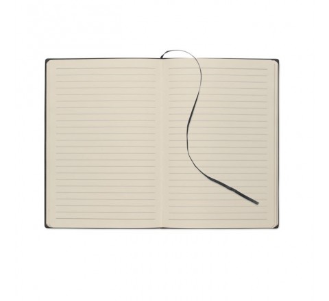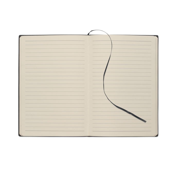 Notatnik A5 z miękką, prążkowaną okładką z PU wykonaną w 40% z materiałów pochodzących z recyklingu i w 60% z PU, z gładką naszywką z PU. 160 stron w linie, papier z recyklingu o gramaturze 70 g/m² (80 arkuszy). Dopasowany kolorystycznie znacznik strony z tasiemki.