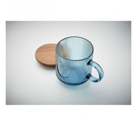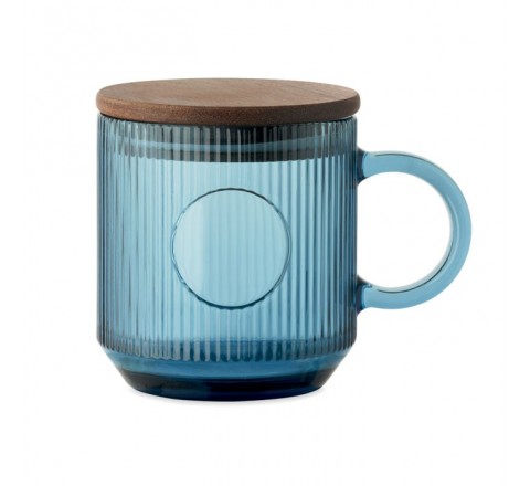 Żebrowany szklany kubek z akacjową pokrywką. Pojemność: 300 ml. FSC®-certified | FSC 100%, W16.3, FSC-C213206