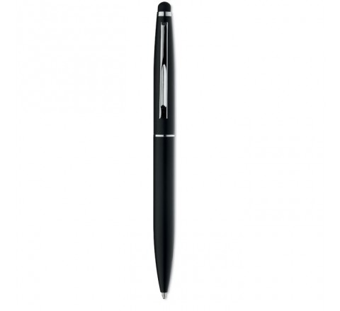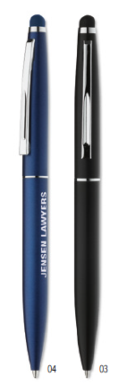 Aluminiowy, przekręcany długopis z rysikiem. Matowe wykończenie. Niebieski wkład.