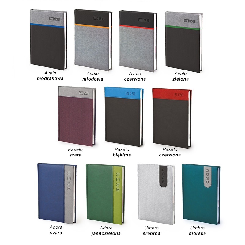 Elegancki, książkowy kalendarz A5 w różnych wzorach.
