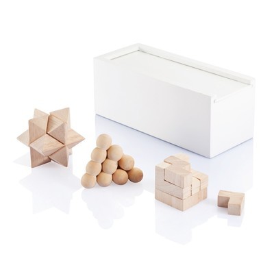 Zestaw gier 3 łamigłówek, wykonane z drewna z certyfikatem FSC®, w pudełku upominkowym z papieru kraftowego certyfikatem FSC®